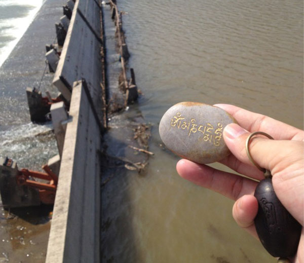 那次,我走在老家河边的路上,准备在河道里安放玛尼石。因为担心被人看见,被人说三道四,就将玛尼石抛掷到河道里。事后,也没想过这块玛尼石对河道里的众生意味着什么。