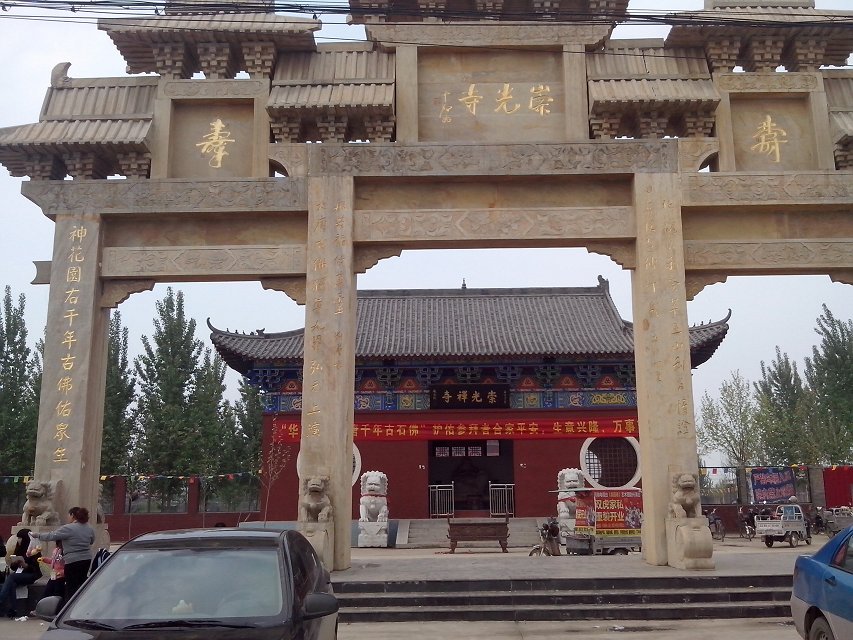 崇光寺始建于北魏年间,原名“宗圣寺”,是西域最早来华传经布道、开宗立圣之精舍。 据查考:明英宗朱祈镇罹难后,其妻钱皇后久闻此寺有唐石佛极其灵异,到寺上香许愿;后英宗果复位,为崇尚大佛之神验,光大古刹之盛誉,特敕赐名“崇光寺”并派司礼监孔哲募资修缮,及至殿宇之大、香火之盛,遂成当时我国北方规模较大的皇赐佛教道场。
