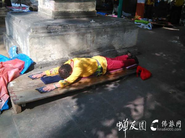 这是2014年10月24日——11月7日,由蝉友圈·佛旅网 朝圣团去印度朝圣的成员,大多数师兄年近花甲。 60岁山东菏泽菩在提伽耶虔诚礼拜 师兄们在正觉塔下饶塔 虔诚礼拜